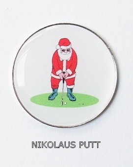 Ballmarker aus Metall mit Kunststoffbeschichtung und einem NIKOLAUS