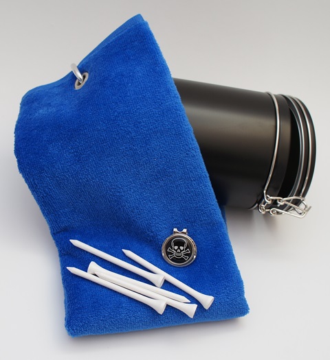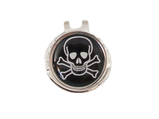 Ballmarker aus Metall mit Kunststoffbeschichtung mit Ballmarker "TOTENKOPF".