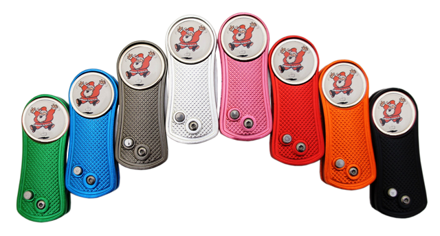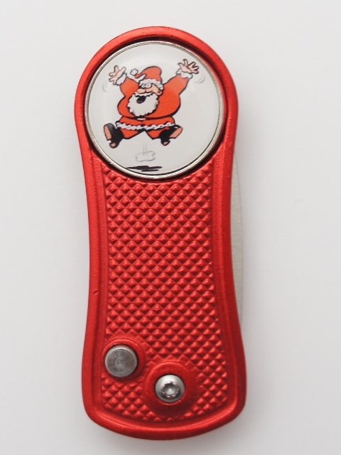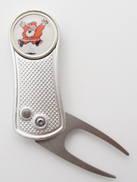 Aufklappbare Pitchgabel, 70 mm x 28 mm x 10 mm, aus Aluminium. Mit einem Magneten für Ballmarker.
