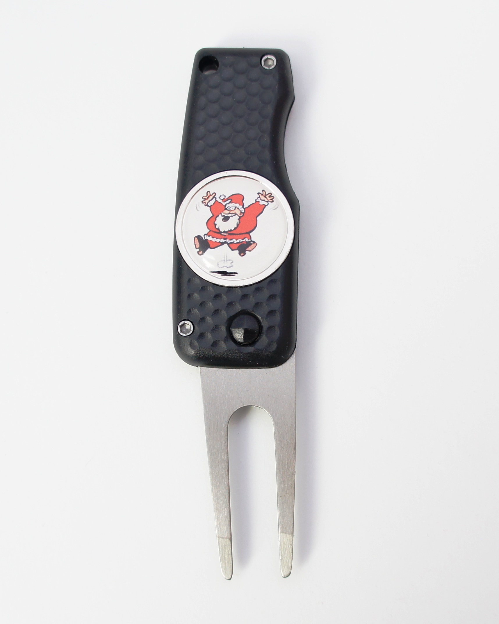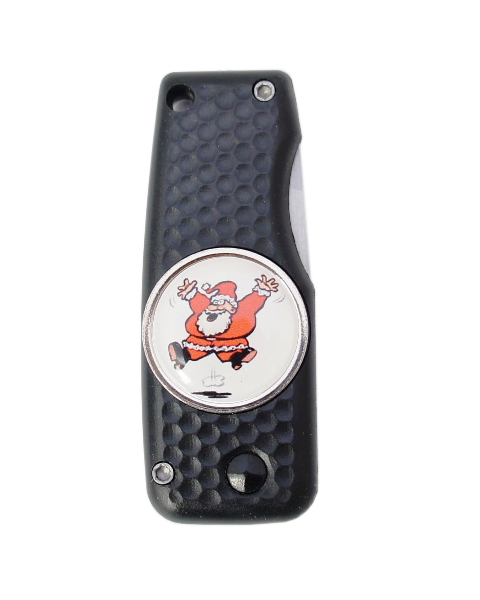 Golfballmarker aus Metall mit Kunststoffbeschichtung, Ø 25 mm, mit einem Nikolaus.